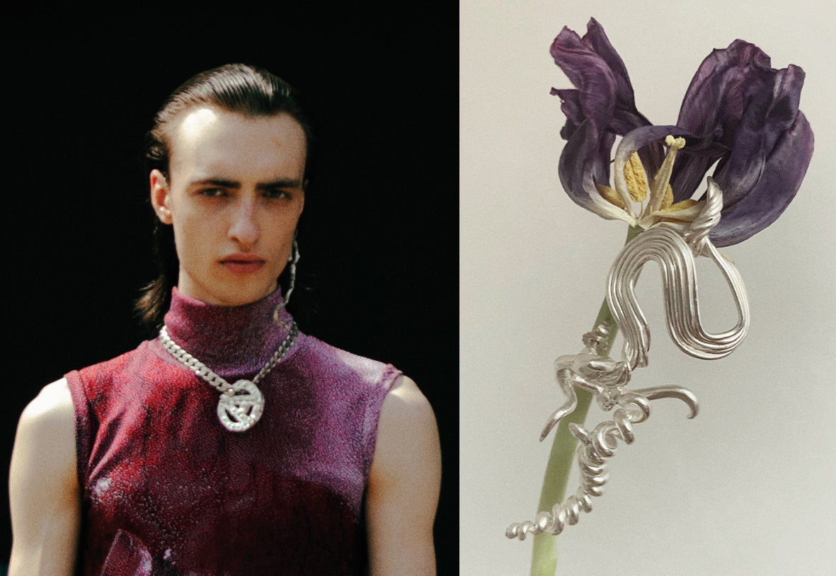 APHER® JEWELRY & SOLIDS IS A JEWELRY BRAND THAT MELTS OPPOSITES INTO A STORM OF IRIDESCENT ENERGY. THE MAGIC INGREDIENT FOR THIS ALCHEMIC PROCESS CONTAINS THE ESSENCE OF EXPERIMENTS WITH SHAPES AND MATERIALS, SURROUNDED BY THE SWEET SCENT OF ETHEREAL TENDERNESS. BERLIN-BASED ARTIST ANGELA, TAKES HER INSPIRATION FROM OBJECT TROUVÉS AND THE AVANTGARDES OF THE 1920S, SCIENCE FICTION AND SPIRITUAL PRACTICE, PUNK AND ELEGANCE. TESTING OUT THE LIMITS OF WEARABILITY, APHER® INCORPORATES THE IDEA OF A PURE ARTISTIC FORM THAT ESCAPES THE PRIMARY PURPOSE OF EMBELLISHMENT. INSTEAD, WEARERS ARE DRAWN INTO AN EMPOWERING AND PROTECTIVE RELATIONSHIP WITH THEIR PERSONAL CHARMS. ALL UNISEX PIECES ARE HANDMADE TO CELEBRATE DIVERSITY BEYOND BINARIES AND CATEGORIES.